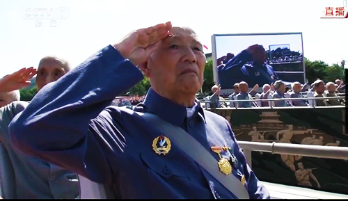 紀念反法西斯戰爭勝利七十周年閱兵式上敬禮的余新元