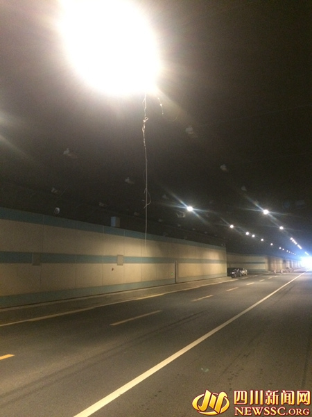 “我開車走下穿隧道里面過,要到出口的時候,突然看到前面吊著一根線,躲都躲不贏,車子都給我打了個凹痕,玻璃都打得啪啪響。如果我要是沒關車窗,不是要直接打到人臉上?”10月16日,從事銷售工作的市民唐先生告訴四川新聞網記者,上午10時40分左右,他開車搭載著4名同事,從下穿隧道經過時,發生了這樣驚險的一幕。