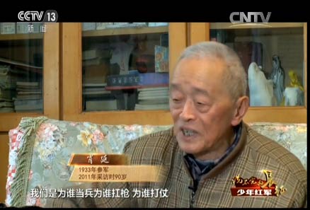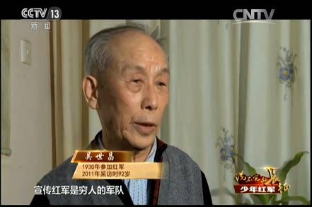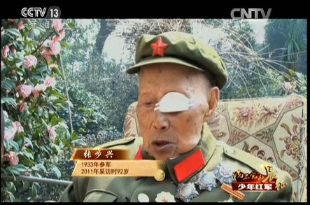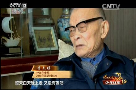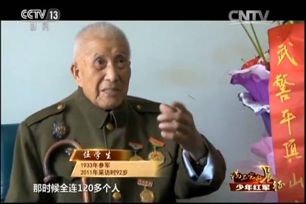 王述文的參軍之路就沒有那么順利了。他八歲參加兒童團(tuán),拿著紅纓槍站崗放哨,跟著自衛(wèi)隊(duì)打土豪、分田地,1933年,紅軍到了王述文的家鄉(xiāng),四川巴中,這一年他九歲。他決定參加紅軍,可沒成想,人家嫌他小,不要。當(dāng)時(shí)王述文覺得只有參加紅軍才有出路,所以就哭、鬧。面對這個(gè)又哭又鬧的孩子,紅軍沒有辦法,只能暫時(shí)讓他跟著部隊(duì)。有一天走了120里路,到晚上點(diǎn)名,點(diǎn)到最后連長也沒點(diǎn)王述文的名字,王述文就“哼”地一聲,連長這次叫了他的名字。