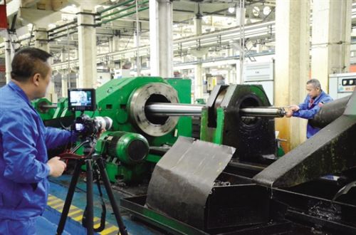 戎鵬強(qiáng)從進(jìn)廠第一天開始就把技能提升作為目標(biāo)。通過幾十年如一日的摸索實(shí)踐,他總結(jié)了“摸、聽、看、量”四字訣。所謂“摸”,主要是摸刀桿,根據(jù)摸刀桿判斷刀在行走時(shí)的狀態(tài);“聽”就是聽機(jī)床發(fā)出的聲音和硫化油流動(dòng)的聲音,判斷機(jī)床運(yùn)轉(zhuǎn)是否正常;“看”是要看鐵屑的形狀和電流表的讀數(shù);“量”是測量刀桿每分鐘行走的距離和內(nèi)控的尺寸。現(xiàn)在的戎鵬強(qiáng)練就了以“手”當(dāng)“眼”的絕活兒,只要用手握住刀桿,通過感受刀頭的震動(dòng),他就能對(duì)加工進(jìn)度做到心中有數(shù)。
