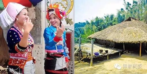 德昂族婦女和德昂族傳統(tǒng)民居。