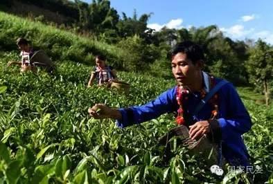 在三臺山鄉(xiāng)出冬瓜村,德昂族青年在采摘茶葉。