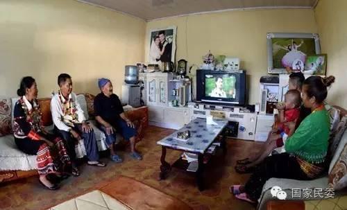 在三臺山鄉(xiāng)允欠村,德昂族群眾在新裝修的客廳內(nèi)看電視。