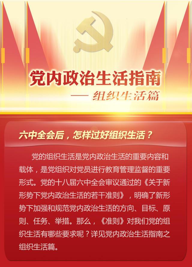 黨的十八屆六中全會審議通過的《關(guān)于新形勢下黨內(nèi)政治生活的若干準則》,明確了新形勢下加強和規(guī)范黨內(nèi)政治生活的方向、目標、原則、任務(wù)、舉措。那么,《準則》對我們黨的組織生活有哪些要求呢?
