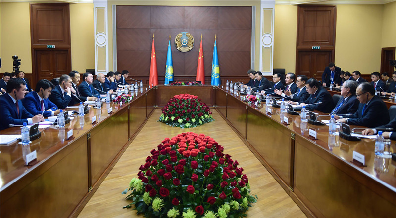李克強指出,中方愿將絲綢之路經濟帶倡議與哈方“光明之路”新經濟政策更好對接,開辟兩國互利合作新階段。中哈產能合作契合雙方發展需要,啟動兩年來取得了一批重要早期收獲,成為兩國務實合作新亮點。希望雙方以產能合作為載體,深挖潛力,推進全方位互利合作,帶動互聯互通等大項目建設不斷取得新成果,更好造福兩國人民。中方愿同哈方深化在上海合作組織等框架下的交流協作,維護地區和平穩定。