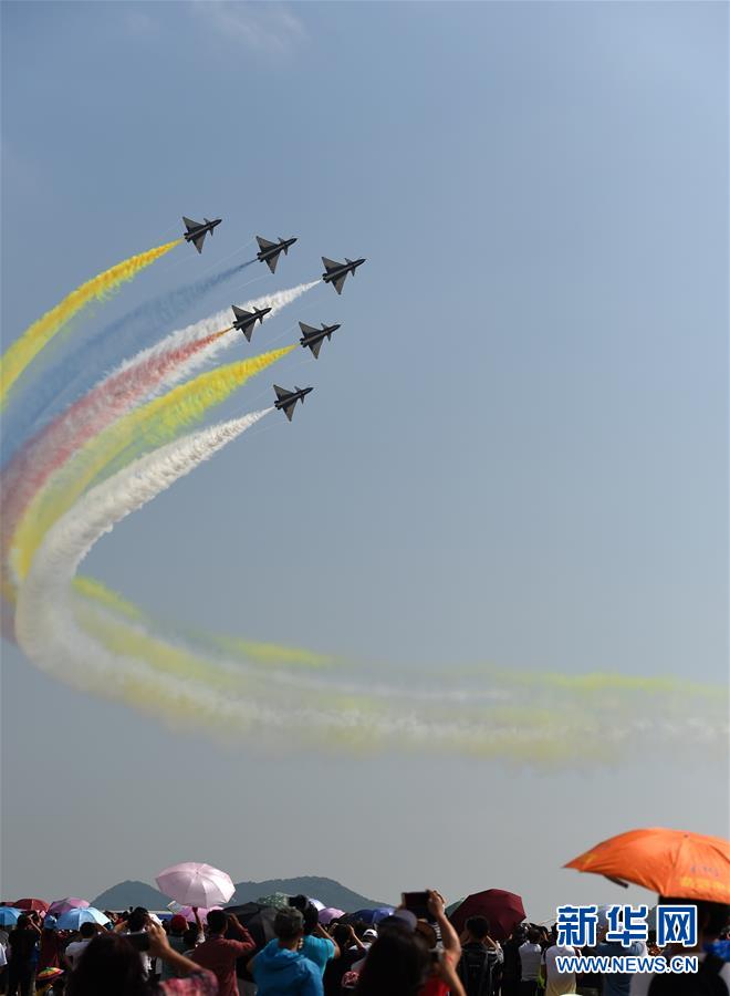 11月6日,觀眾在航展現場觀看飛行表演。當日,在廣東珠海舉行的第十一屆中國國際航空航天博覽會落下帷幕。 新華社記者賈宇辰攝