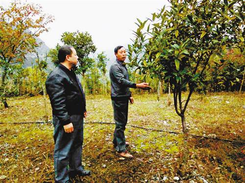 周天松(右)在給村民講解果樹種植技術(shù)。通訊員 王豪 攝