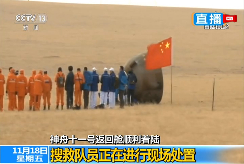 國(guó)際在線綜合報(bào)道:2016年11月18日,搭載航天員景海鵬、陳冬的神舟十一號(hào)飛船在完成各項(xiàng)任務(wù)后,順利在位于內(nèi)蒙古中部草原的主著陸場(chǎng)著陸。