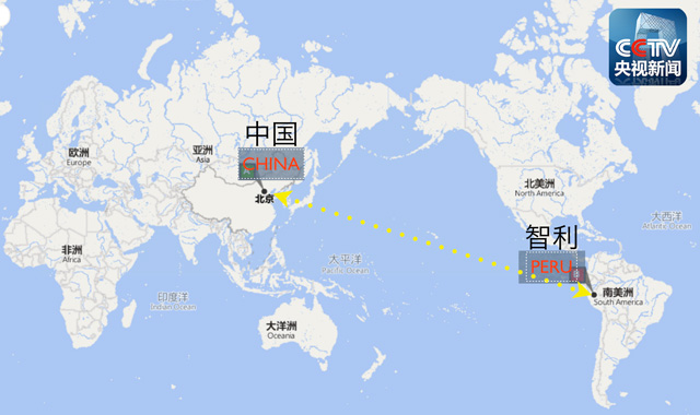 中國(guó)與秘魯?shù)拇_相隔萬(wàn)里之遙,數(shù)據(jù)顯示,中國(guó)距離秘魯?shù)木嚯x是17049公里,空中飛行距離為10594公里。北京與秘魯首都利馬有13小時(shí)的時(shí)差。