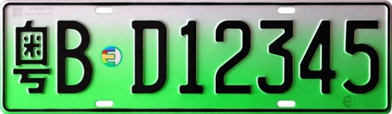 新能源汽車號牌外廓尺寸為480mm×140mm,號牌長度比普通號牌增加40mm,其中大型新能源汽車后號牌寬度減少80mm。與普通汽車號牌相比,外觀式樣上主要有4個變化:一是突出綠色元素,體現鮮明特點。新能源汽車號牌式樣底色以綠色為主色調,突出綠色環保的寓意,采用全新的號牌號碼字體,整體式樣美觀新穎、特色鮮明,便于在服務管理中準確識別、明顯辨識。二是增設專用標識,展現電動特色。在號牌式樣上增加新能源汽車號牌專用標識,標識整體以綠色為底色,寓意電動、新能源,綠色圓圈中右側為電動插頭圖案,左側彩色部分與英文字母“E”(Electric電)相似。三是號牌號碼升位,增加號牌容量。與普通汽車號牌相比,新能源汽車號牌號碼由5位升為6位,如原“粵BD1234”可升位至“粵BD12345”。升位后,號牌號碼容量增大、資源更加豐富,編碼規則更加科學合理,可以滿足“少使用字母、多使用數字”的編排需要。四是實行號牌分段,便于差異管理。為更好實施國家新能源汽車產業發展及差異化管理政策,新能源汽車號牌按照不同車輛類型實行分段管理,字母“D”代表純電動汽車,字母“F”代表非純電動汽車(包括插電式混合動力和燃料電池汽車等)。小型汽車號牌中“D”或“F”位于號牌序號的第一位,大型汽車號牌中“D”或“F”位于號牌序號的最后一位。五是改進制作工藝,提高防偽性能。采用無污染燙印制作方式制作,工藝綠色環保。同時,增加了二維條碼、防偽底紋暗記、激光圖案等防偽技術,實現號牌唯一性和生產源頭追溯,提高了防偽性能。