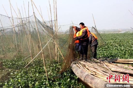 11月28日,在湖北省荊門市沙洋縣,該縣后港鎮(zhèn)港口村中心圍湖劉家臺、馬洪臺附近的3處1858畝長湖圍欄圍網(wǎng)正在拆除。