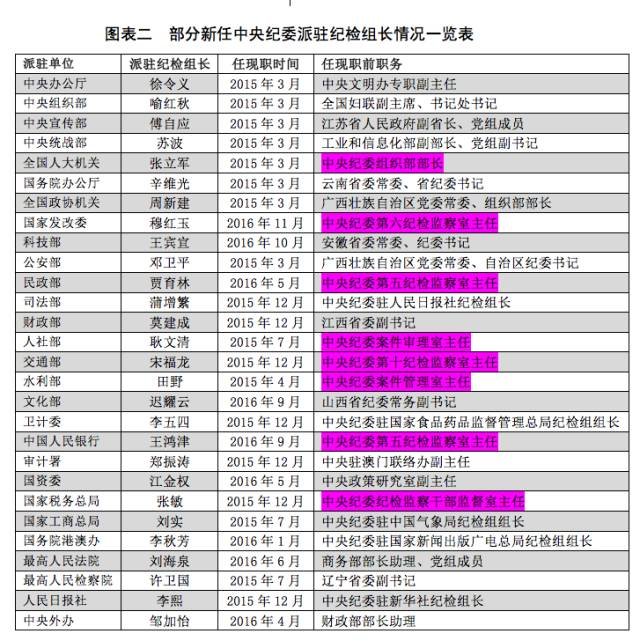說到這里,可以再來看一下2015年3月以來,新任的中央紀(jì)委派駐紀(jì)檢組組長(zhǎng)的情況。(詳見圖表二)