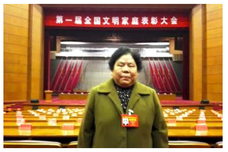 △習近平總書記接見全國文明家庭代表,71歲的余洪芝老人被安排在第一排