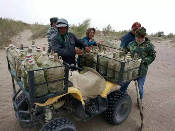 萬事開頭難!由于古日乃地區嚴重缺水,常年處于干旱狀態,剛開始,老倆口種的樹成活率不高。可是,面對低成活率和惡劣的環境,固執的圖布巴圖沒有動搖,而是買了相關書籍,從書里找答案,向林業等相關部門專業技術人員求教!在樹種選擇上下功夫,從“源頭”開始提高造林成活率。經過與專業人員探討,他們挑選適宜本地區種植的耐旱、耐鹽堿的梭梭等優良草科植物。因地制宜、因時搶栽。春天風大,夫妻倆把梭梭苗泡在水里,等風勢減弱時,搶時間栽種,像是跟老天爺玩捉迷藏,常常累得喘不過氣來!夏天是梭梭苗補水的季節,沙漠中的氣溫高達45℃以上,夫妻倆頂著似火驕陽一趟趟拉水澆灌。45℃的高溫下,普通人坐著都覺得難忍,何況是60多歲的老人,還要在烈日下勞作!那種艱難是我們無法想象的……