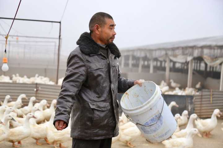 50多歲的貧困戶于鳳陽就是其中之一,在進入鎮里肉鴨養殖基地工作之前,他一直靠在建筑工地打零工掙錢,苦累不說,隨著年齡的增大,越來越難攬到活計。家里有老父親要贍養,妻子生病又欠下債,日子過得很辛苦。今年,老于經村里介紹,到肉鴨養殖基地喂鴨子,加上清掃鴨舍、撿鴨蛋,每月能掙3000元。“比建筑工不知輕松多少倍,關鍵是看在家門口,每天干完活,還不耽誤照顧家里。”老于說,這份工作,讓一家人有了穩定的收入來源。