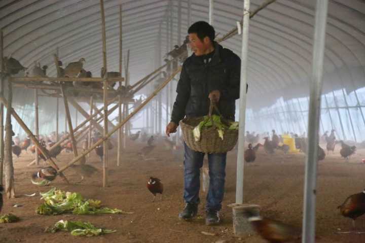 由于妻子生病離不開人,彭果決定在家創業。他聽說養野雞掙錢,就到蚌埠學習養殖技術、購買了雞苗。村里幫彭果辦了特殊養殖許可證,還幫他申請了5萬元貧困戶小額貼息貸款,在村里的支持下,彭果的野雞養殖棚很快建了起來。彭果還在家門口開了家小店,縣里郵政局聽說了,給彭果送來了電腦,免費為彭果接入系統,將快遞站點設在了彭果的店。如今,彭果的小店紅紅火火,野雞也開始小批量銷售。說起未來,小伙子黝黑的臉上漾起笑,“現在國家政策好,我有信心,一定會再過上好日子。”