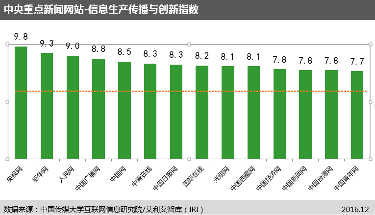 信息生產傳播與創新方面、信息導向以及內容安全保障方面,中央重點新聞網站表現較好,各網站之間差異不大;用戶管理、響應度方面,整體仍還需要加強。