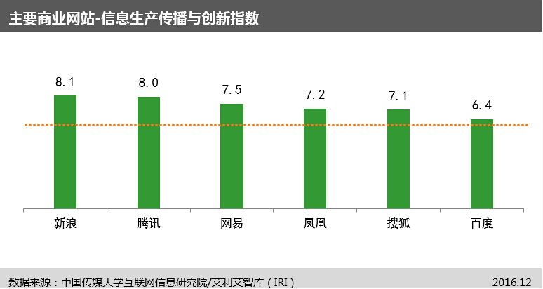 主要商業網站在信息生產傳播與創新能力、信息導向方面彼此差異不大,但與中央重點商業網站之間還存在一定差距;在內容安全保障方面,部分商業網站存在推送低俗色情信息、“標題黨”等現象,內容把關需進一步加強。