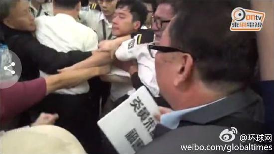 [環(huán)球網(wǎng)綜合報(bào)道 記者 趙衍龍]香港“眾志”秘書(shū)長(zhǎng)黃之鋒、“立法會(huì)議員”羅冠聰、以及2名主張“自決”的“議員”朱凱廸、姚松炎日前赴臺(tái)出席“臺(tái)獨(dú)”組織的論壇,其中黃之鋒和羅冠聰由出發(fā)到臺(tái)灣都分別遇到示威。繼黃之鋒今午返港時(shí)遇到示威,羅冠聰今晚返港落機(jī)時(shí)亦疑遇襲。香港東網(wǎng)1月8日?qǐng)?bào)道稱,抵港后的羅冠聰被多名示威人士撕破衣服,更被淋疑似奶茶的液體,羅最后在保安的護(hù)送下乘坐的士離開(kāi)。