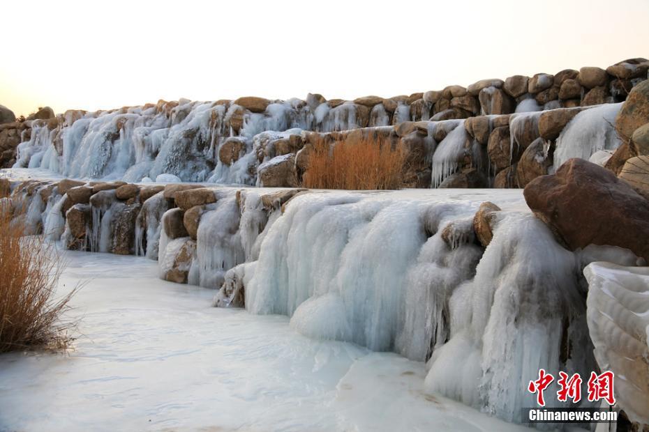 “三九”寒天,甘肅張掖市濱河新區(qū)一處瀑布被冰凍,形成奇特造型的冰瀑景觀,晶瑩剔透的冰瀑、冰掛,成為冬日一景。 朱希彬 攝