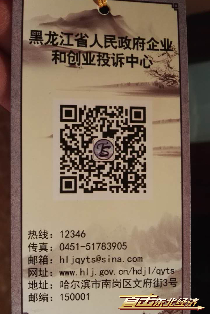 黑龍江省政府2014年成立了全國首家省政府企業投訴辦理機構,這是該機構發放的印有聯系方式的書簽。(中國經濟網 范戴芫攝)