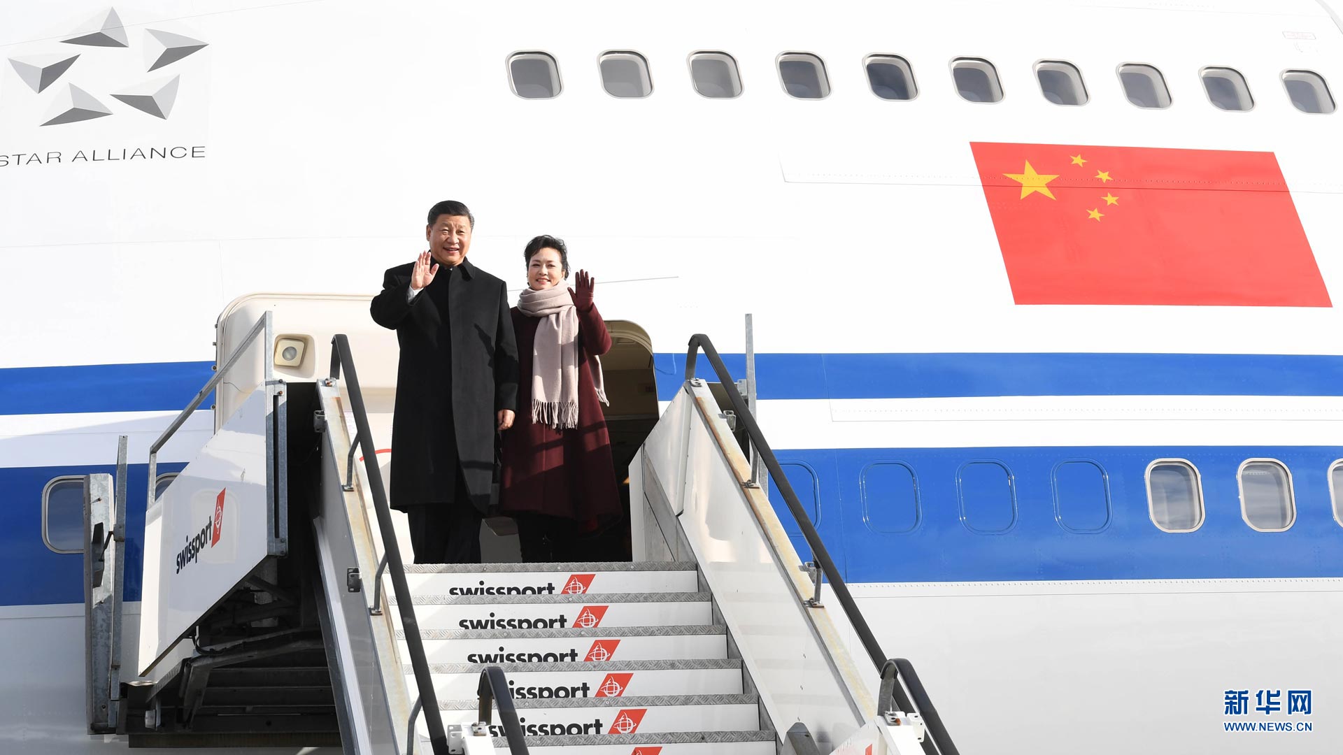 1月15日,國家主席習(xí)近平乘專機(jī)抵達(dá)蘇黎世,開始對瑞士聯(lián)邦進(jìn)行國事訪問。 這是習(xí)近平和夫人彭麗媛步出艙門。新華社記者饒愛民攝2017-01-16