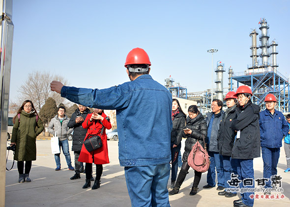 張建軍介紹蘭石化在綠色環(huán)保方面所做出的努力和成果。(每日甘肅網(wǎng)記者周飛/攝)