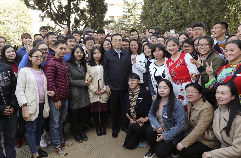 【李克強:你們要將西南聯大精神發揚光大】李克強24日來到位于云南師大的西南聯大舊址。寒假仍留校的學生們聞訊趕來。總理說,你們現在的教學條件比當年好得多。當年是“物質上得不了,精神上了不得”。希望你們在這里汲取前輩們的精神養分,傳承剛毅堅卓的文化品格,將西南聯大的精神發揚光大。
