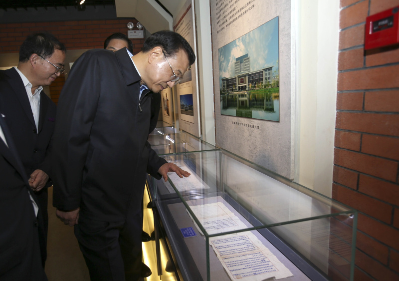 【李克強:西南聯大是中外教育史上的奇跡】馮友蘭撰文的紀念碑聳立在蒼松下,梁思成設計的教室一如原貌。李克強24日來到昆明西南聯大舊址。總理說,聯大以剛毅堅卓為校訓,在極端艱難困苦中弦歌不輟,大師輩出,賡續了我們民族的文化血脈。這不僅是中國教育史上的奇跡,也是世界教育史上的奇跡。