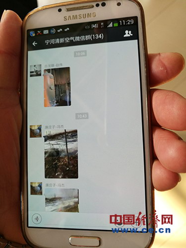與重點監測不同,基層的空氣污染監控“主要靠網格員觀察巡視”。“網格員發現問題后馬上處理,然后拍照、定位,發送到工作群里,這樣,什么問題、在哪兒、誰發現的、怎么處理的、結果怎么樣,一目了然,出了問題能夠落實具體責任”,寧河區副區長李海春說道,“這也能更好地教育群眾,你說不是你弄的,照片和坐標在這兒呢。”隨后,寧河區環保局局長楊景春向中國經濟網記者展示了手機上的治污治霾工作群,群里不斷有網格員上傳照片、定位和坐標。