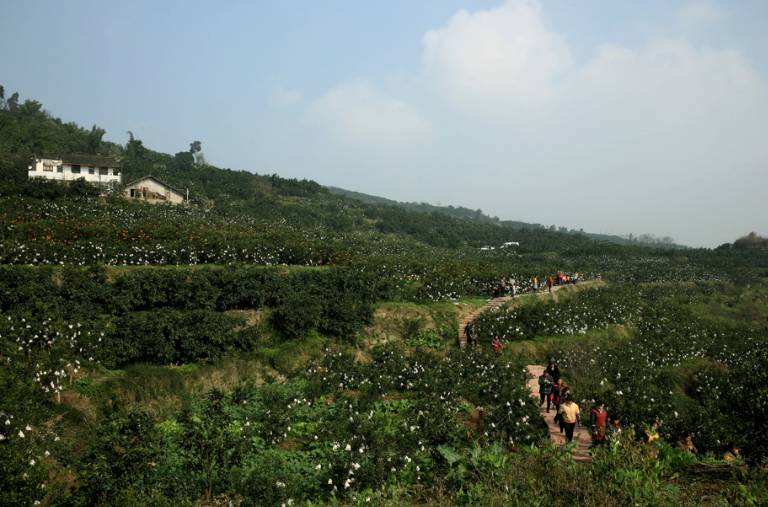 “山上種柑橘,山下住樓房,家家有小車,新年新暢想。”這說的,就是成都蒲江長秋新村里的生活。66 歲村民蔣懷軍說,2012 年大家伙兒一起從長秋山上集中搬了下來的時候,內(nèi)心還充滿躊躇,五年間,生活卻發(fā)生了翻天覆地的變化。