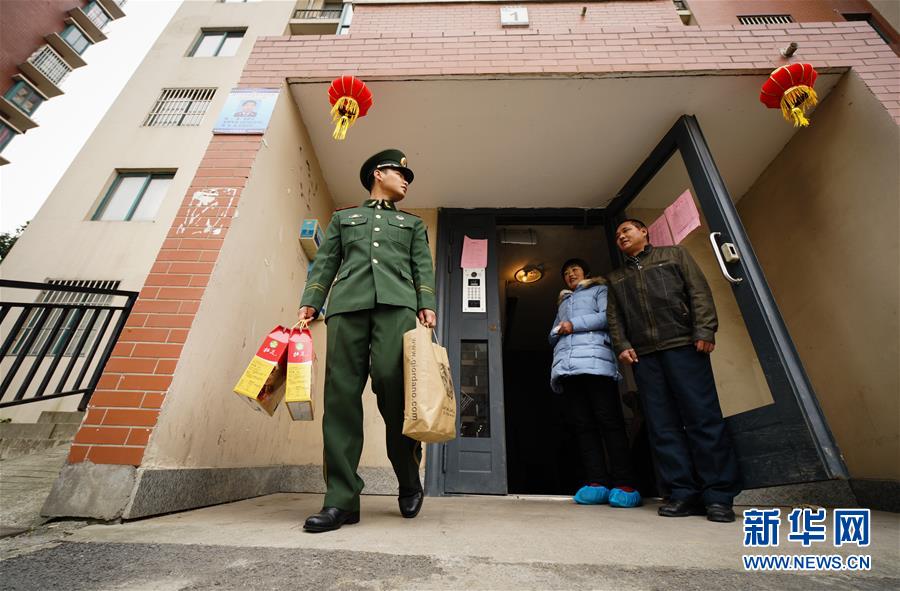 江蘇南京,即將回崗執(zhí)勤的江蘇邊防總隊南通邊檢站3210艇機電兵劉盼(左)在小區(qū)樓下和父母告別(2月1日攝)。  相聚難,離別更難。在春節(jié)闔家團圓溫馨熱鬧之后,生活又將逐漸回歸往日的平靜。  再溫暖的懷抱,也要掙脫前行;再溫馨的家園,也要轉(zhuǎn)身離開;為了平安、幸福和更美好的生活,含著眼淚也要收拾行囊,帶著希望向著明天進發(fā)。因為,他們是留守兒童的慈祥父母,也是創(chuàng)造更好生活的頂梁柱;他們是“長不大”的兒子,也是保衛(wèi)家園的子弟兵;他們是善良孝順的子女,也是貧困村致富的領(lǐng)路人。  離別的眼淚要笑著流下來,囑咐的話兒再多也不嫌多……  新華社記者 李響 攝