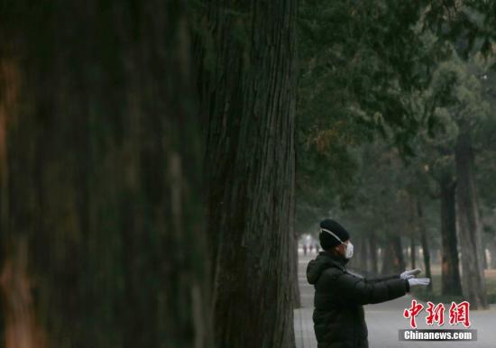 2月4日,一位老人在北京天壇公園健身。中新社記者 劉關(guān)關(guān) 攝