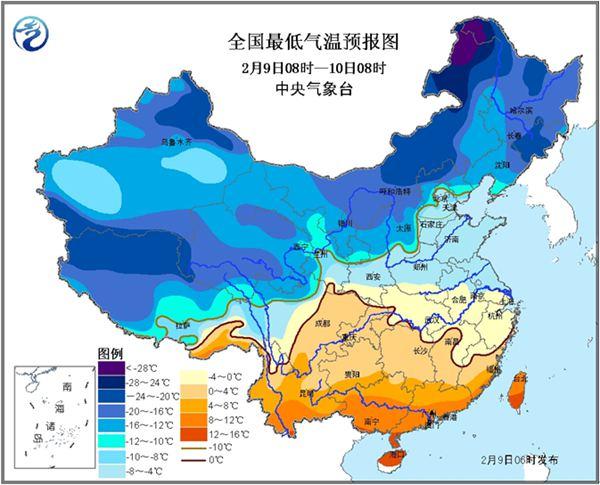 雖然雨雪已經消退,但冷空氣帶來的降溫卻在繼續(xù)深入,大風降溫將波及南方更多區(qū)域,中央氣象臺預計,9日至11日凌晨,中東部地區(qū)氣溫較低,其中,江南中北部最低氣溫將達到-2~0℃,江南南部和華南北部最低氣溫將達到2~5℃。9日至10日,長江下游以北地區(qū)有4~6級偏北風,東部和南部海區(qū)風力有6~8級。中央氣象臺于今天6時繼續(xù)發(fā)布寒潮藍色預警。
