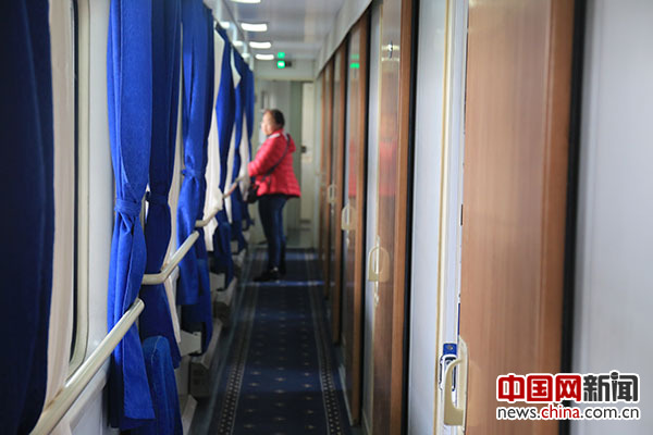 2月14日,一名乘務(wù)員正在軟臥車廂為旅客換票。中國網(wǎng)記者 郭澤涵 攝