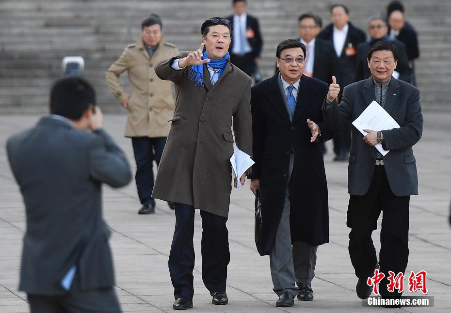 3月8日,十二屆全國人大五次會議在北京人民大會堂舉行第二次全體會議。圖為香港代表姚祖輝(左)、黃玉山(中)和胡曉明走出會場。 中新社記者 韋亮 攝