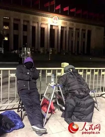 “上次看升國旗是去年兩會的時候,這算是記者上會的福利啦。”3月5日清晨6點,北京人民大會堂東門外,記者們已經排起了百余米的長隊等待安檢。初春的北京乍暖還寒,有人跺著腳、有人搓著手。晚到的記者有些郁悶地問“你們幾點來的?”排在最前面的人輕哼了一聲,自顧自說著“凌晨3點就到了”。