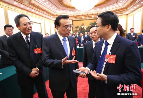 審議中,李錦斌、李國英、劉慶峰等代表分別圍繞貫徹新發(fā)展理念、培育新動能、發(fā)展民營經(jīng)濟(jì)等作了發(fā)言。李克強(qiáng)與大家深入交流。