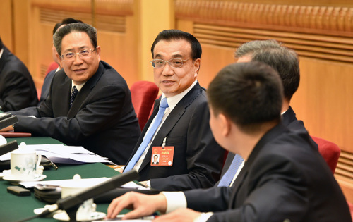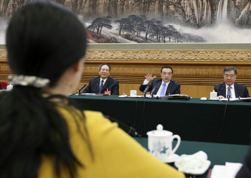 中新網(wǎng)3月10日電 李克強總理3月10日上午來到十二屆全國人大五次會議安徽代表團參加審議。