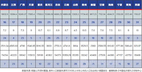 31個省份公布的2016年GDP總量,展示出了不一樣的區域格局。