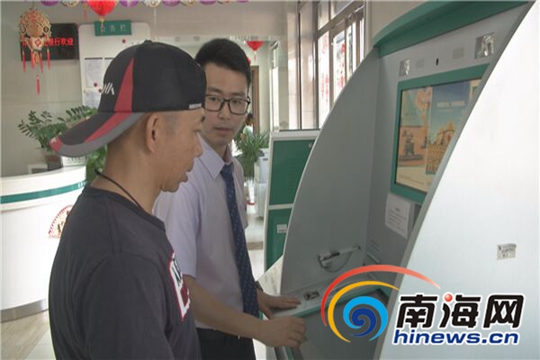 中國農業銀行海南省分行省行級青年崗位能手王劍為客戶辦理業務。