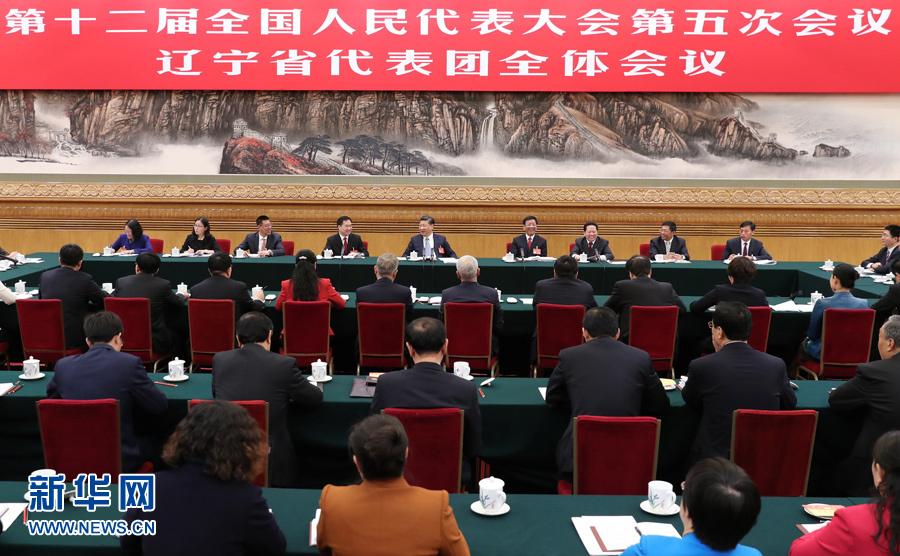 圖為:2017年3月7日,中共中央總書記、國家主席、中央軍委主席習近平參加十二屆全國人大五次會議遼寧代表團的審議。