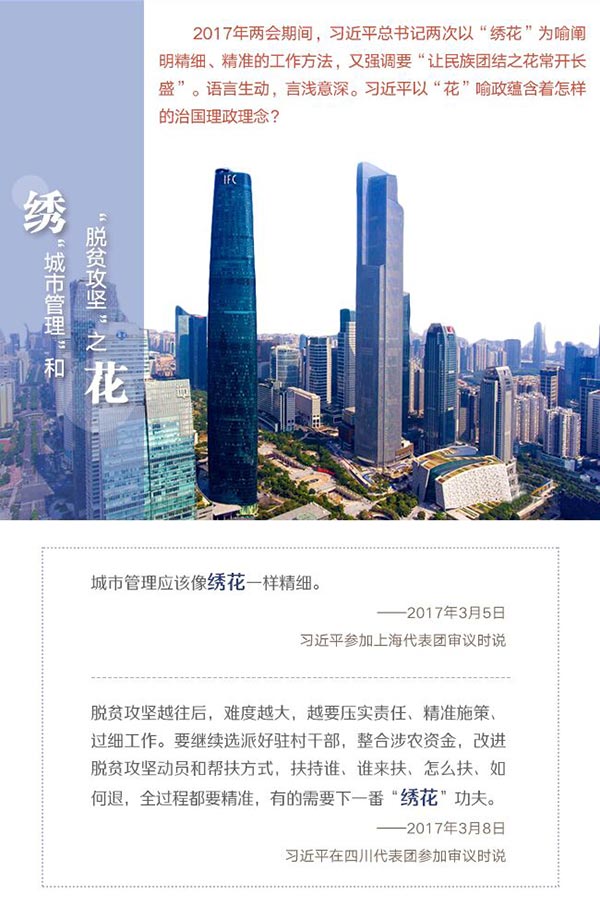 今年兩會,習(xí)近平兩次談到“繡花”。繡的什么花?