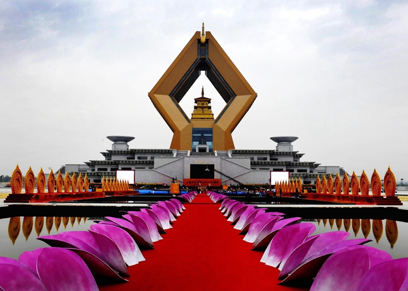 法門寺因舍利而置塔,因塔而建寺,原名阿育王寺。釋迦牟尼佛滅度后,遺體火化結(jié)成舍利。公元前三世紀,阿育王統(tǒng)一印度后,為弘揚佛法,將佛的舍利分成八萬四千份,分送世界各國建塔供奉。中國有十九處,法門寺為第五處。唐高祖李淵武德七年(625年)改名“法門寺”。現(xiàn)常住僧眾230余人,法門寺正在展現(xiàn)昔日“皇家寺院”的風采,同時也為世界佛教“朝圣中心”這一宏偉的目標而精進不懈。