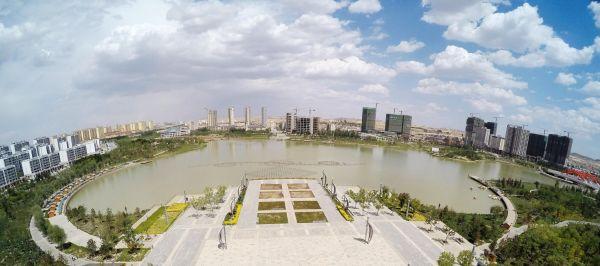 資料圖片:這是航拍的蘭州新區2號人工湖及周邊環境 新華社記者 陳斌 攝
