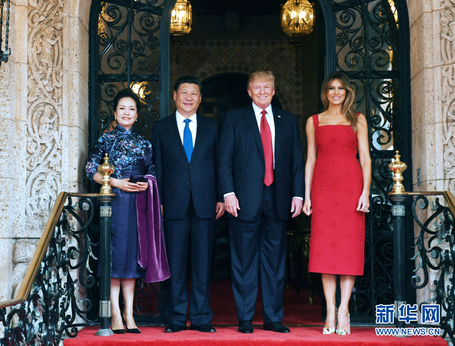 當(dāng)?shù)貢r(shí)間4月6日,國(guó)家主席習(xí)近平在美國(guó)佛羅里達(dá)州海湖莊園同美國(guó)總統(tǒng)特朗普舉行中美元首會(huì)晤。這是習(xí)近平和夫人彭麗媛同特朗普和夫人梅拉尼婭合影留念。新華社記者 饒愛(ài)民 攝