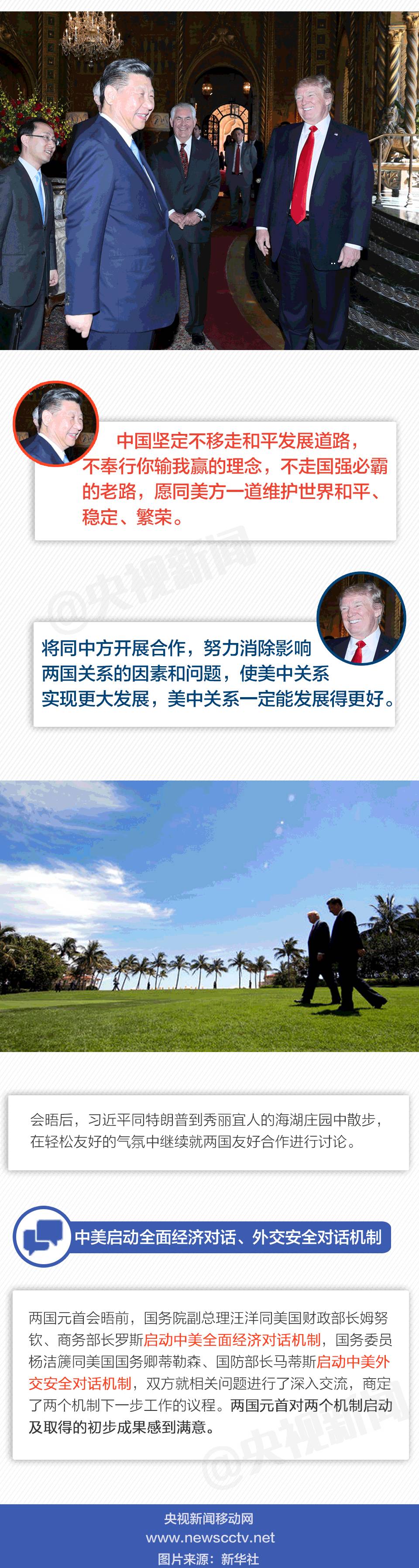 4月6日至7日,國家主席習近平赴美國佛羅里達州海湖莊園,同美國總統特朗普舉行中美元首會晤。這是美國新政府就職以來中美兩國元首首次會晤,受到各界廣泛關注。