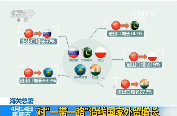 海關統計顯示,今年以來,我國對部分一帶一路沿線國家進出口繼續保持較快增長,一季度,我國對俄羅斯、巴基斯坦、波蘭、哈薩克斯坦和印度等國進出口分別增長37%、18.7%、19%、69.3%和27.7%。