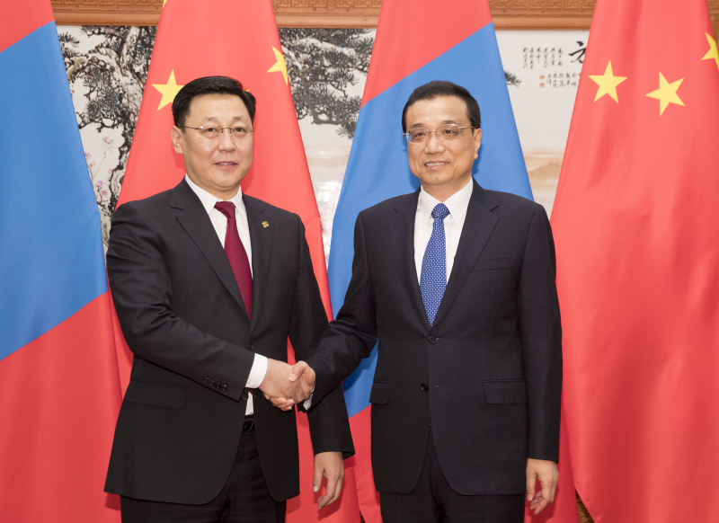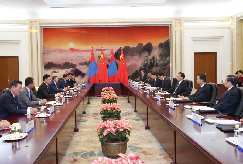 李克強(qiáng)表示,中蒙兩國是友好鄰邦和全面戰(zhàn)略伙伴。雙方要繼續(xù)本著相互尊重、平等相待的原則,切實(shí)尊重彼此核心利益和重大關(guān)切,鞏固中蒙關(guān)系的政治基礎(chǔ)。我們愿加快“一帶一路”倡議同蒙方“發(fā)展之路”戰(zhàn)略對接,加大對跨境口岸建設(shè)和跨境經(jīng)貿(mào)合作的投入,做好中蒙自貿(mào)區(qū)聯(lián)合可行性研究相關(guān)工作,提升兩國經(jīng)貿(mào)合作水平。落實(shí)好住宅建設(shè)、農(nóng)畜產(chǎn)品深加工、能源資源利用等領(lǐng)域達(dá)成的合作共識,更好實(shí)現(xiàn)互利共贏、共同發(fā)展。