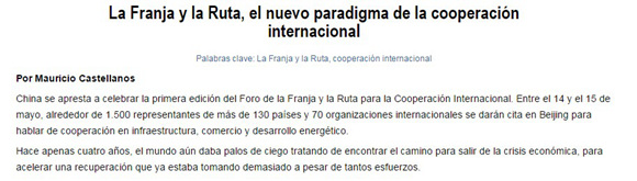 (作者系哥倫比亞記者,原文鏈接:La Franja y la Ruta, el nuevo paradigma de la cooperación internacional)